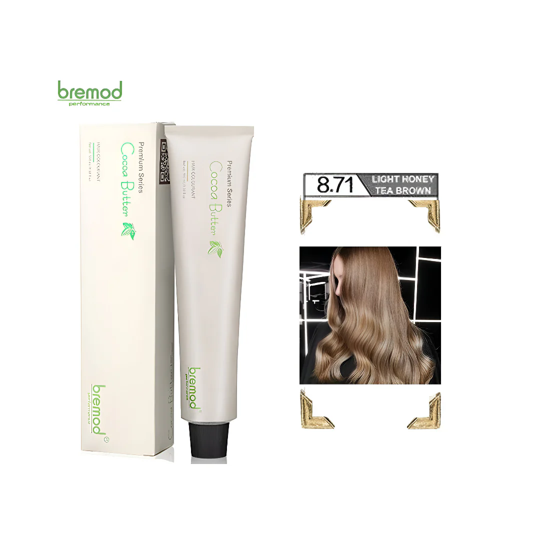 Achieve a rich, luminous Light Honey Tea Brown shade with Bremod Performance Premium Series Hair Color. Formulated with Cocoa Butter and advanced color-locking technology, it delivers vibrant, long-lasting color while keeping the hair nourished, shiny, and healthy.