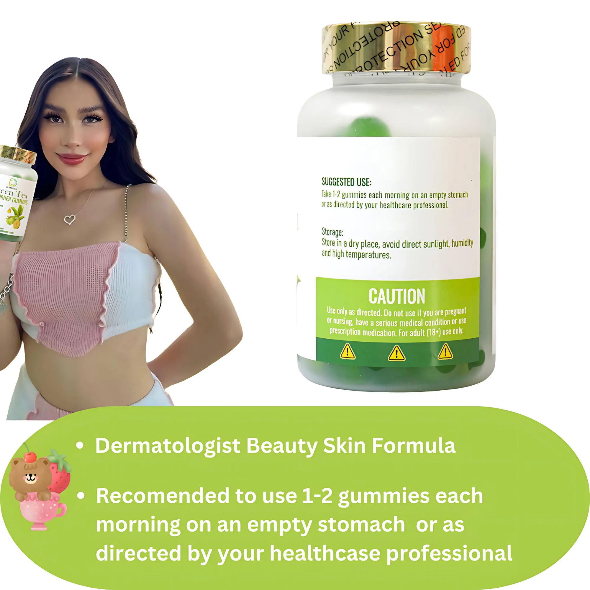 Each bottle contains 60 flavorful green tea gummies, ideal for daily use. With just 10 calories and 4.3g carbs per serving, they fit easily into most low-sugar or keto-based lifestyles.