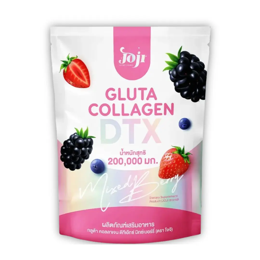 JOJI Gluta Collagen DTX Mixed Berry Powder is a berry-flavored dietary supplement drink designed for convenient daily use. Each sachet contains a blend of commonly used supplement ingredients including glutathione, collagen, vitamin C, and fruit extracts.