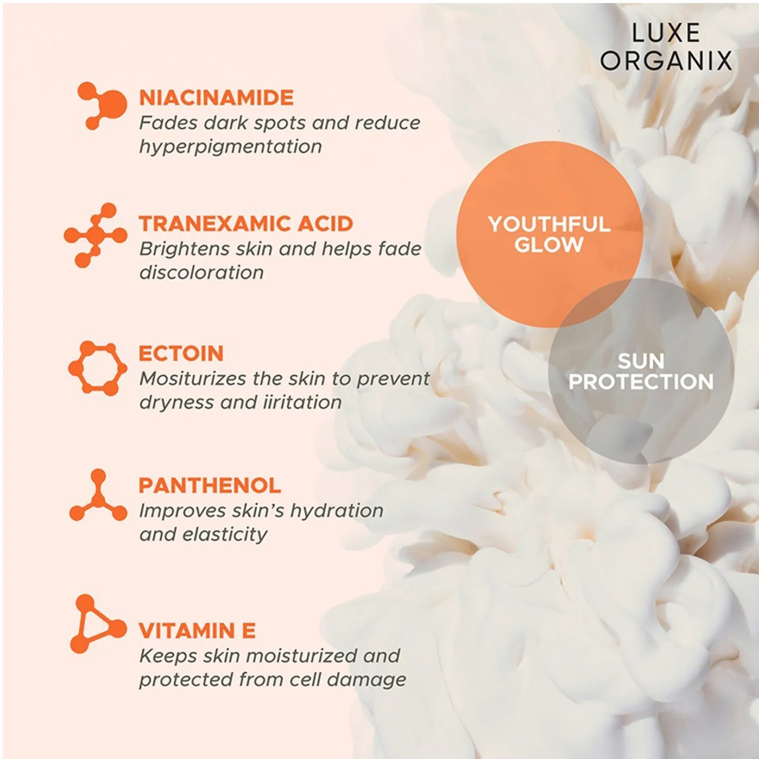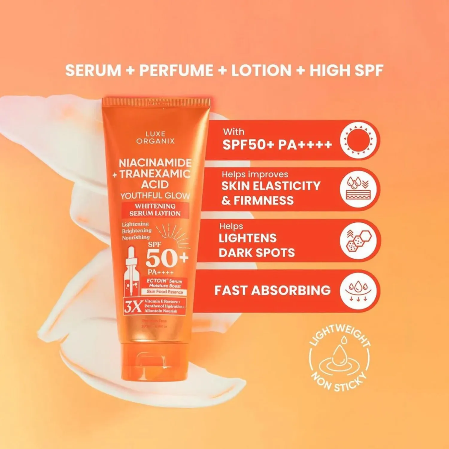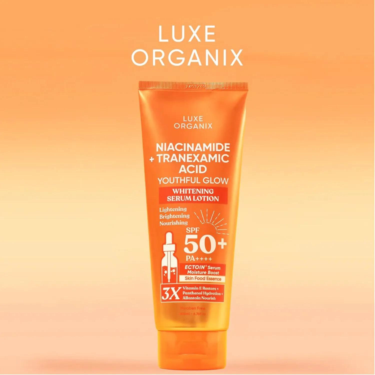 Luxe Organix Niacinamide + Tranexamic Acid Youthful Glow Whitening Serum Lotion SPF 50+ PA++++ – Brightening, Anti-Aging, and Sun Protection in One Lightweight Formula