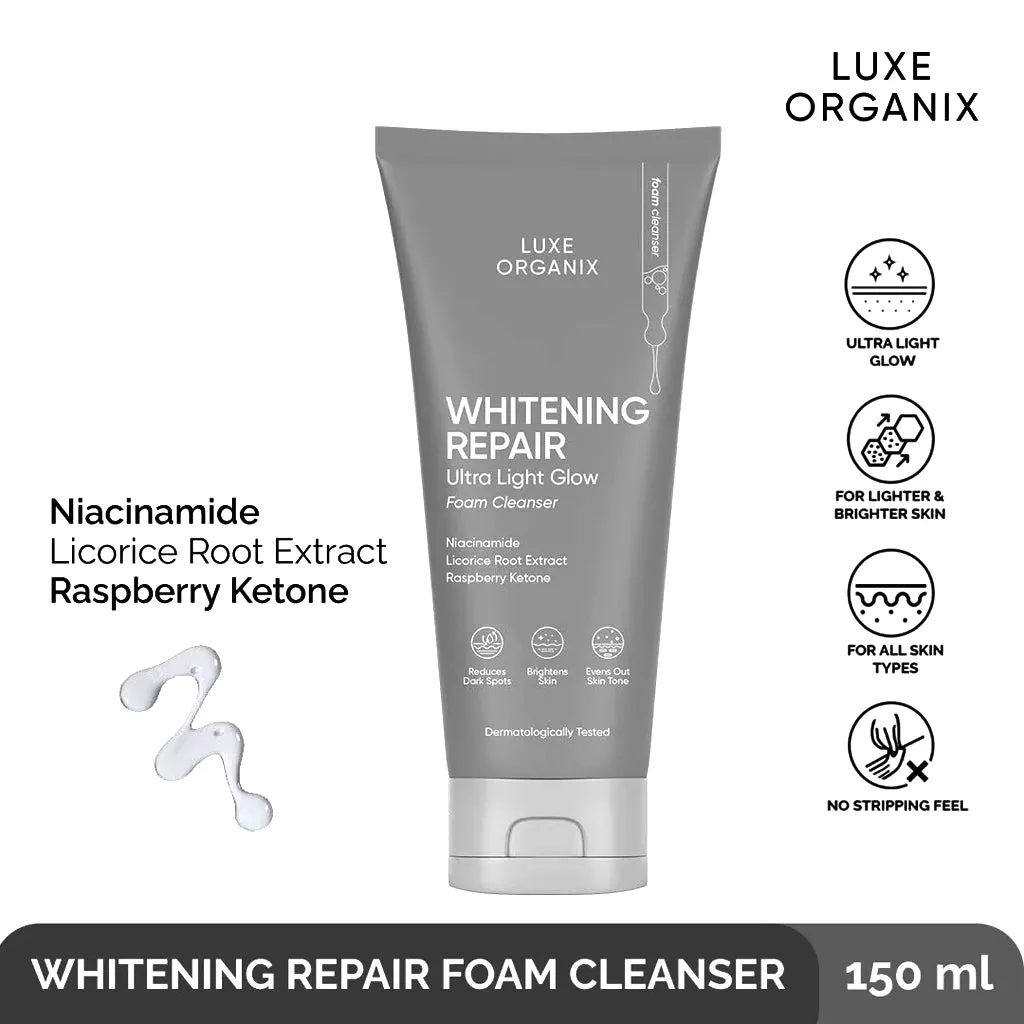 Cleanse your way to clearer, more radiant skin with Luxe Organix Whitening Repair Ultra Light Glow Foam Cleanser—a gentle yet powerful solution for everyday skincare