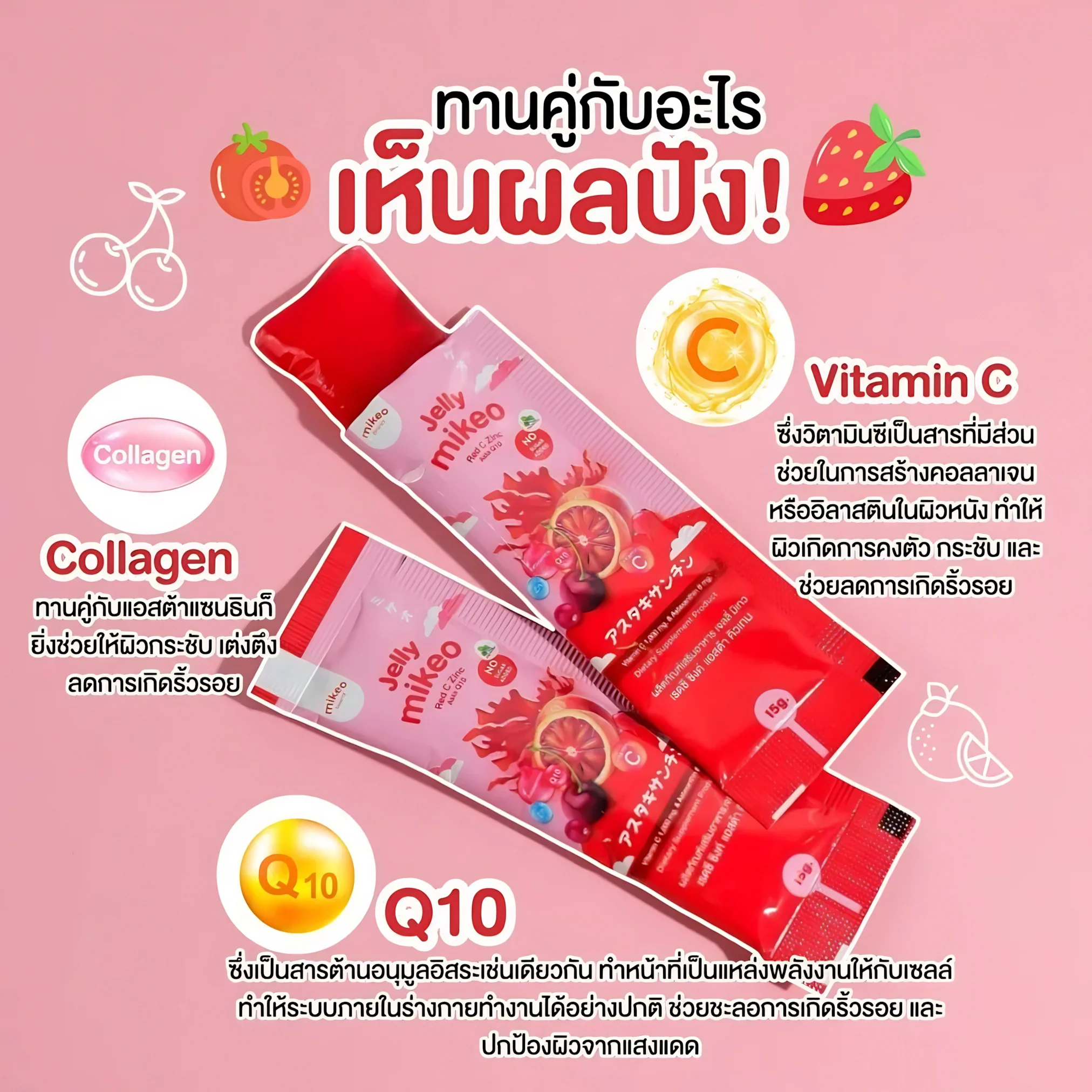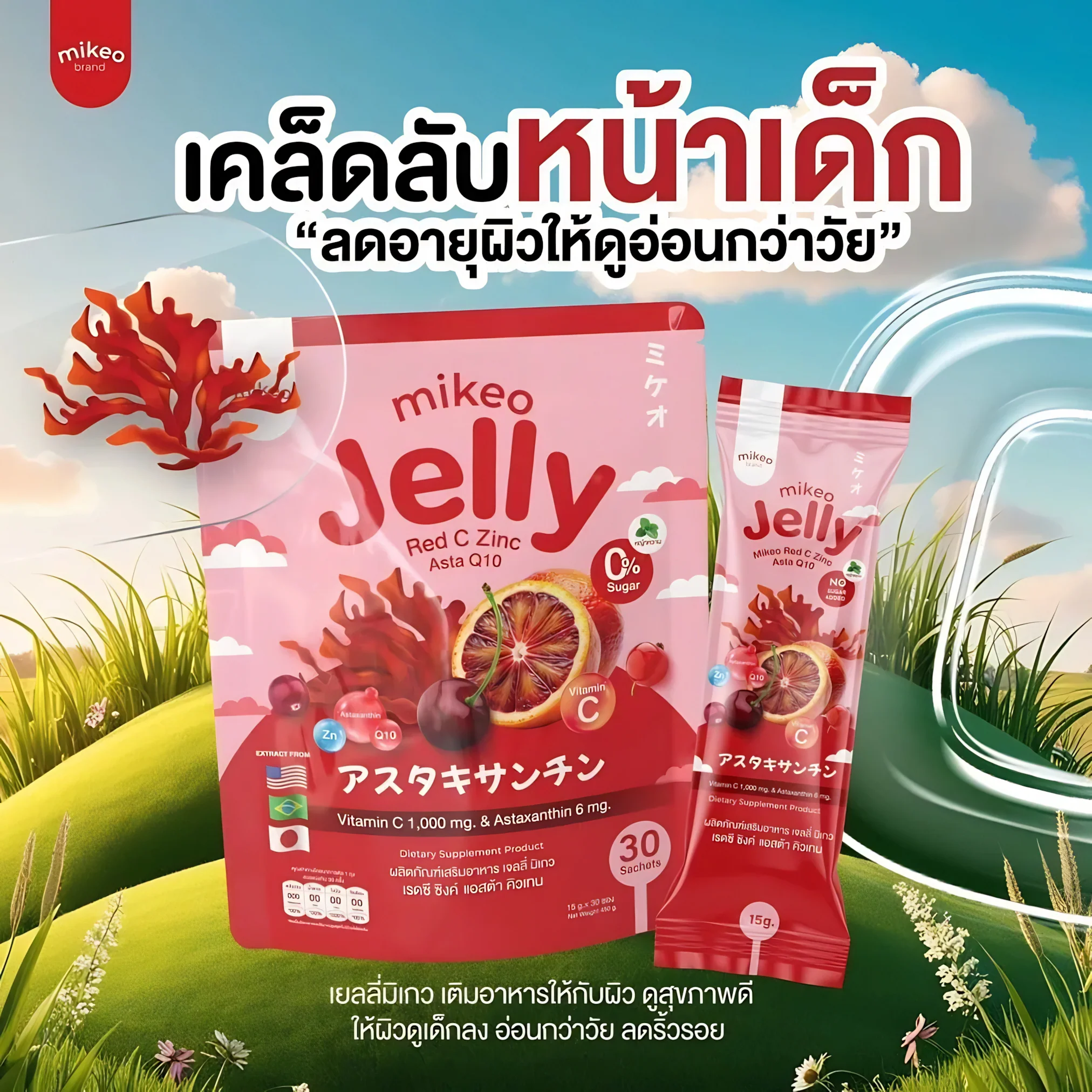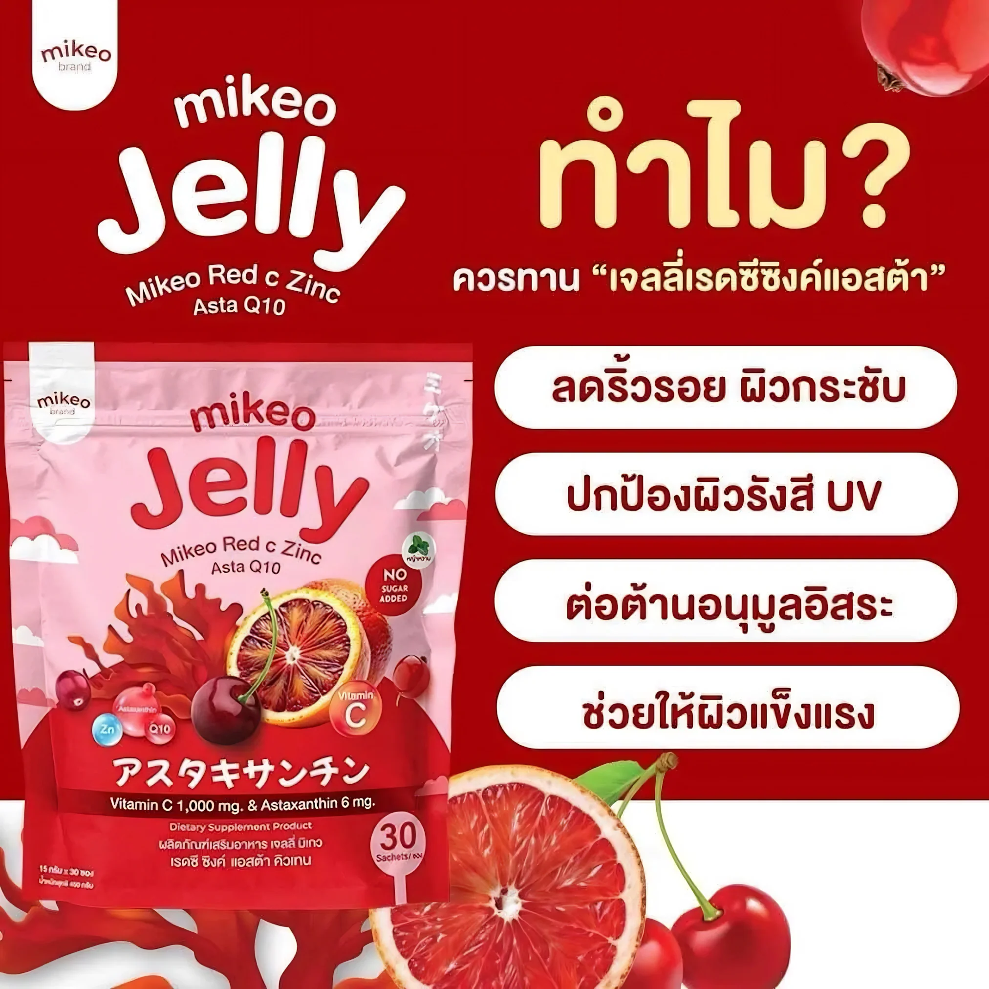 Nourish your skin from within with Mikeo Jelly Red C Zinc Asta Q10 — the delicious beauty jelly that helps you glow with youthful confidence every day.