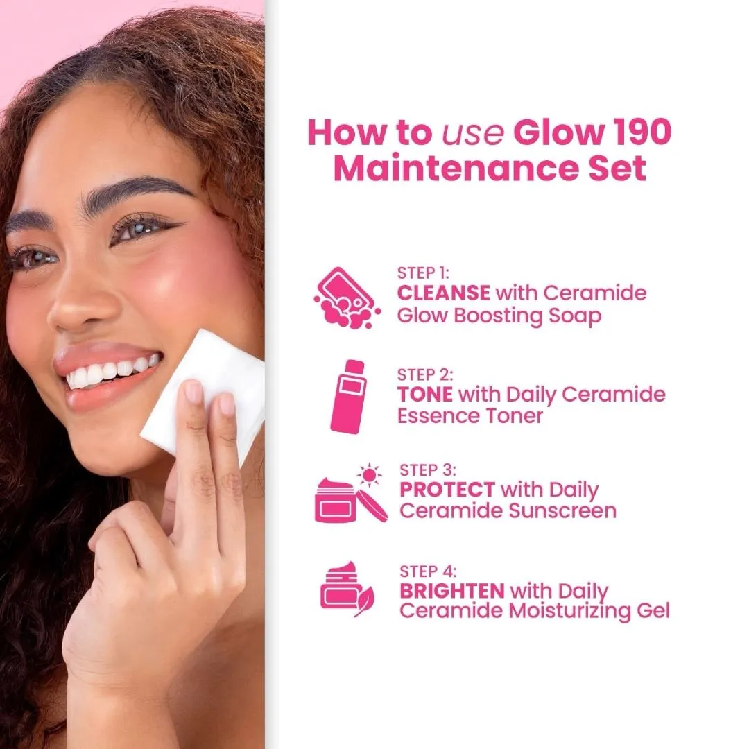 Unlock the secret to healthy, radiant skin with the Glow 190 Maintenance Set. Specially formulated with powerful actives and nourishing extracts, this all-in-one skincare solution hydrates, brightens, and protects your skin barrier for a glowing, youthful complexion.