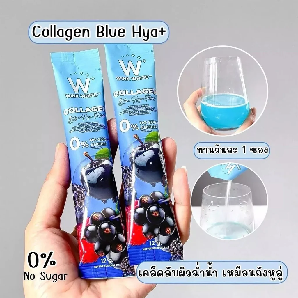 Wink White Collagen Blue HYA Plus – Advanced Collagen Drink for Skin, Joints & Total Beauty – 15 Sachets x 12g
